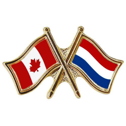 Our Canada / Netherlands crossed flag pins (also known as friendship pins) are high quality, with butterfly clasp.