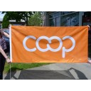 36″ x 72″ (i.s.) Co-op logo flag, white logo on a Orange background.