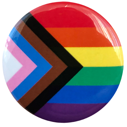 1.5″ digitally printed round “Inclusive Pride” buttons, laminated with safety pin backing.