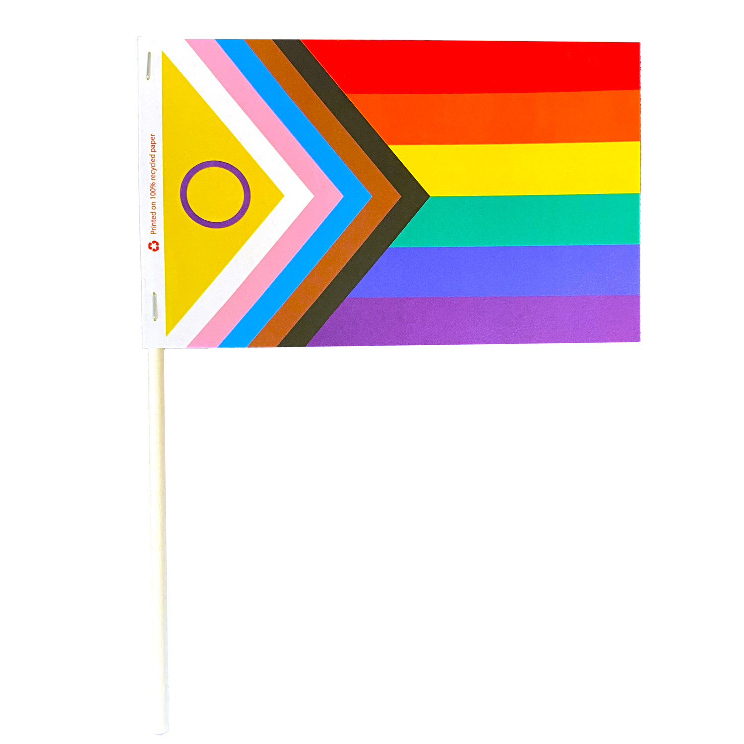 4″ x 6″ Intersex Inclusive Pride paper stick flags. Made by The Flag Shop.