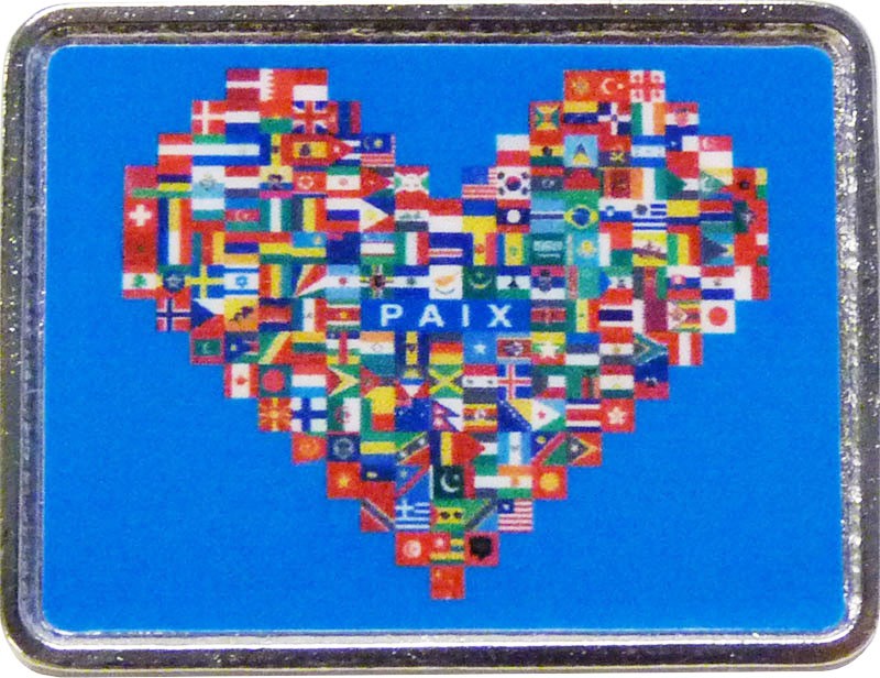 The heart shape is made up by international country flags, with the wording “PAIX” in the centre.